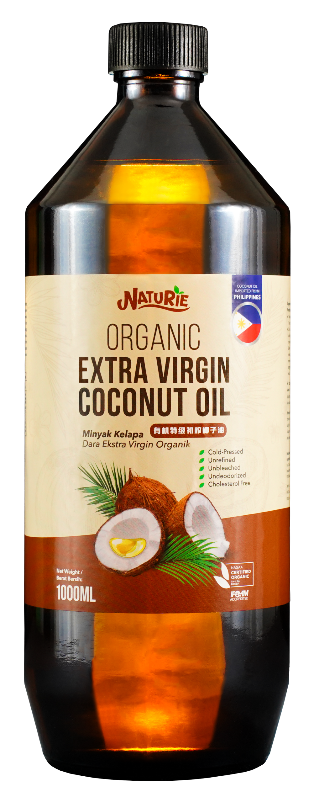 Naturie™ Organic Extra Virgin Coconut Oil is derived from the first press of the finest organically grown coconuts in the Philippines. The oil is cold-pressed, unrefined, unbleached, and undeodorized to preserve its natural goodness. With a high smoking point, it’s perfect for all your cooking needs. Additionally, the oil is packed with medium-chain triglycerides (MCTs), which are smaller in molecular size, ensuring better absorption and easy conversion into energy.