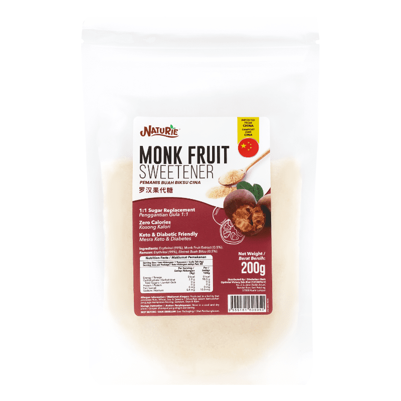 Naturie™ Monk Fruit Sweetener is a naturally derived sweetener blend that offers the perfect balance of sweetness without the calories. Made from Erythritol (99%) and Monk Fruit Extract (0.5%), it provides a clean, sugar-like taste with zero glycemic impact—making it an ideal choice for those who wish to enjoy sweetness while maintaining a healthy lifestyle.