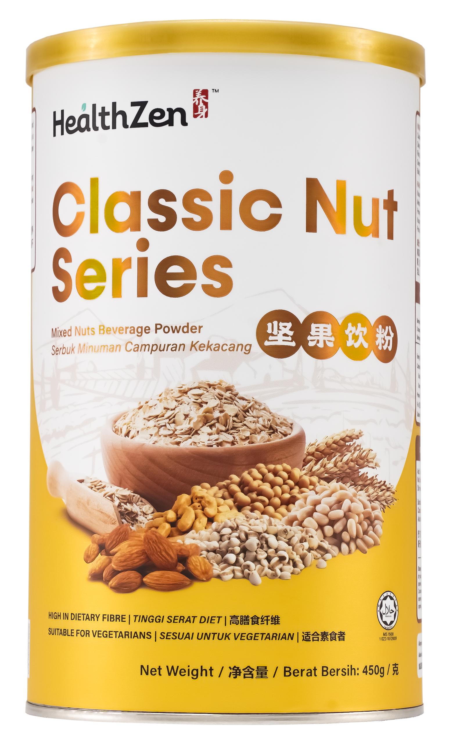 HealthZen™ Classic Nut Series  dirumus khas daripada gabungan beberapa jenis kacang dan biji semulajadi. Kacang kaya dengan protein, omega 3 & 6 berasaskan tumbuhan dan rendah karbohidrat. Mereka juga merupakan sumber vitamin dan mineral yang hebat seperti vitamin E dan magnesium. HealthZen™ Classic Nut Series sememangnya merupakan minuman berkhasiat yang baik untuk menyokong kesihatan harian anda tanpa beban tambahan.