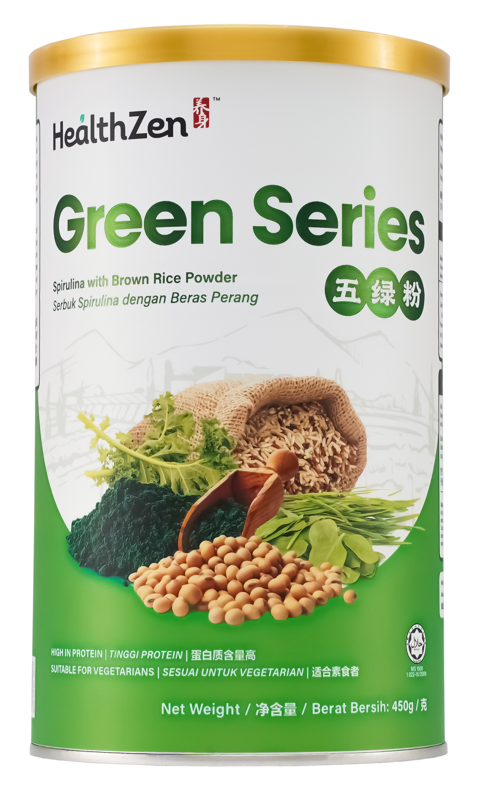 HealthZen™ Green Series ialah campuran pengalkalian rumput barli, rumput gandum organik, kangkung organik, bayam organik & spirulina, yang mengandungi banyak vitamin, mineral, serat, klorofil dan antioksidan. Ia menawarkan jumlah protein yang tinggi, yang membantu membina dan membaiki tisu badan. Siri Hijau HealthZen™ ialah minuman berkhasiat dengan perisa hijau dan rumput yang menarik, yang sesuai untuk dijadikan sebagai minuman harian.